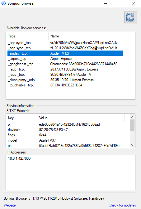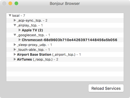 Your Apple TV should be visible in the _airplay._tcp section, while Chromecast devices should be present in _googlecast._tcp.